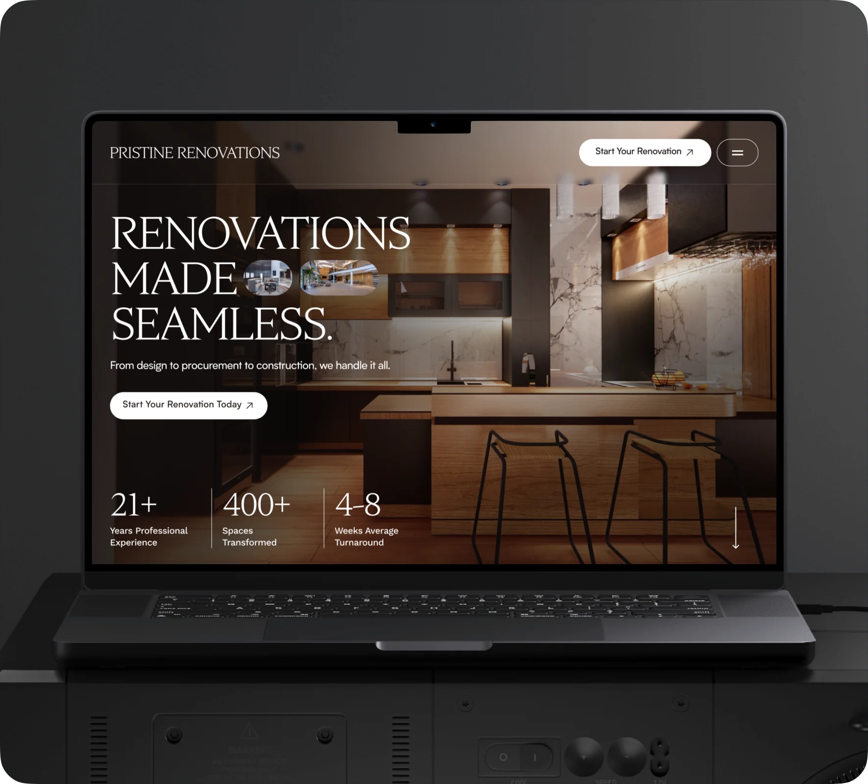 5Four partnered with Pristine Renovations to lead a full rebrand and website transformation as the company expanded into larger residential and commercial projects. We developed a Webflow site featuring high-end project portfolios and lead capture tools to support sales growth. The result is an elevated, sales-focused brand presence that positions Pristine Renovations as a premier choice for discerning homeowners and commercial clients pursuing six-figure projects and beyond.
